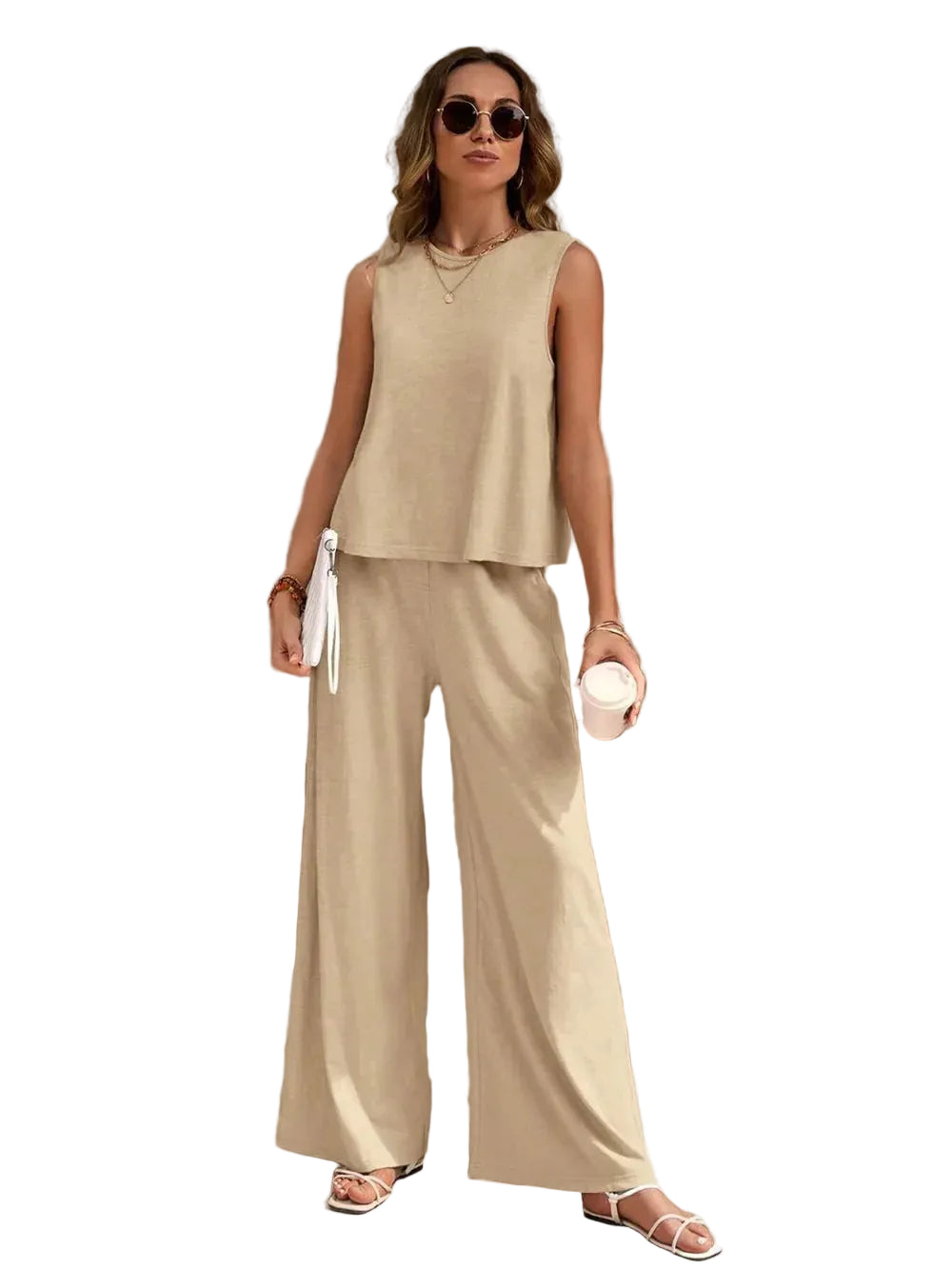 Women's Sleeveless Round-Neck Top and Trousers Summer Set