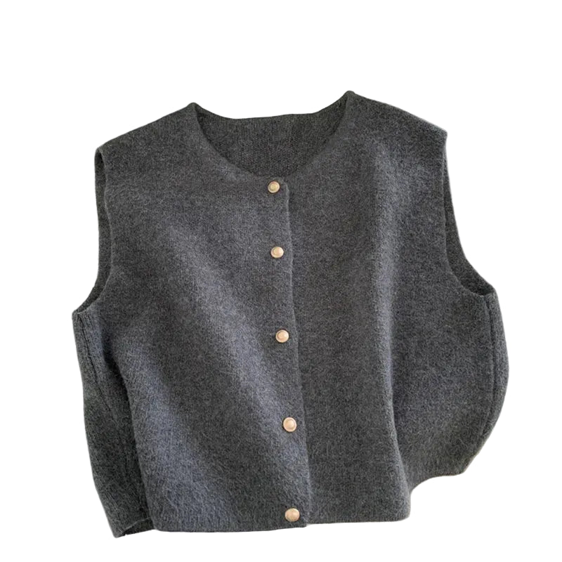 Women's Sleeveless Button-Front Cardigan with Crew Neckline and Knit Surface