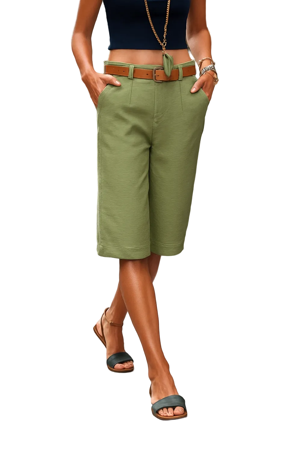 Women's Wide-Leg Shorts with Belt Loops and Button Closure