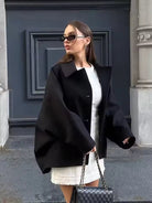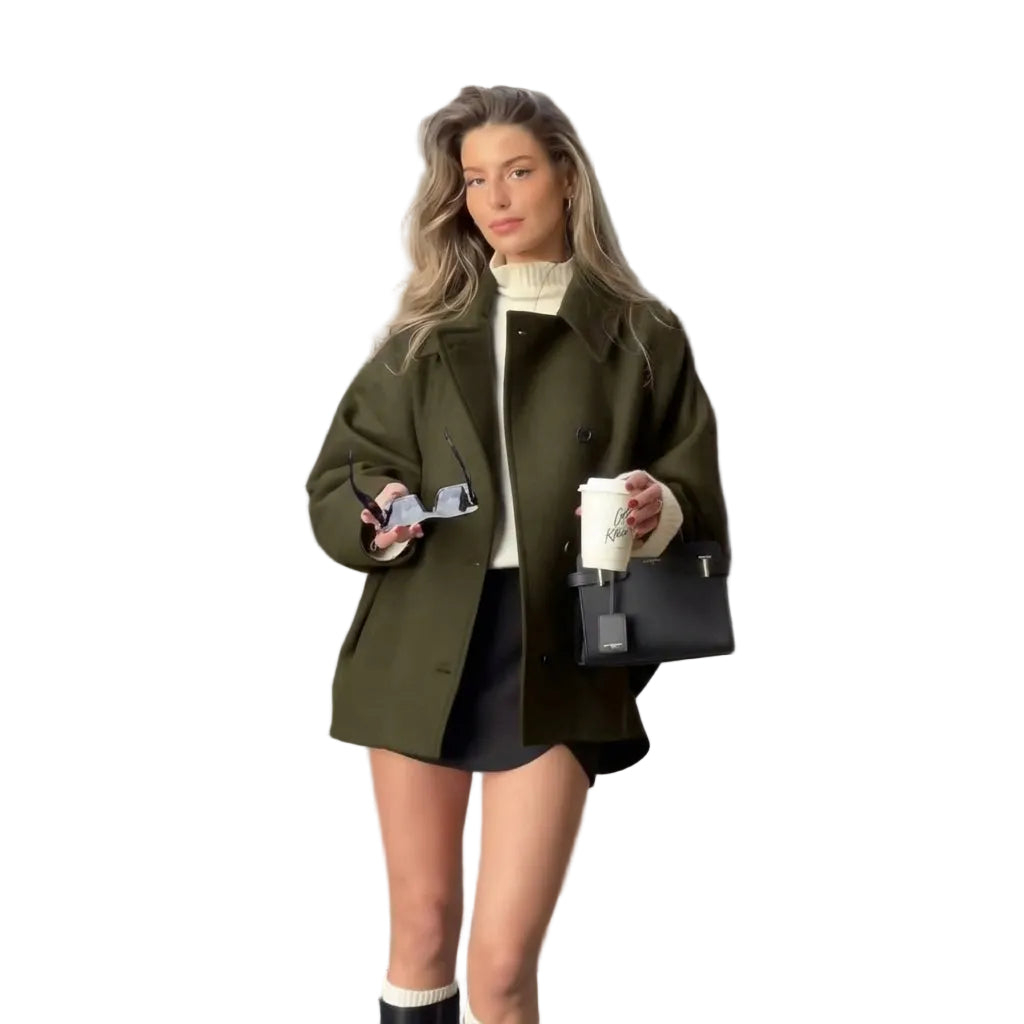 Women's Button-Front Jacket with Turndown Collar and Side Pockets
