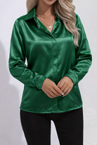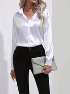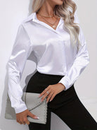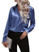 Women's Collared Blouse with Long Sleeves and Glossy Surface
