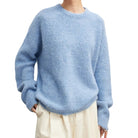 Women's Crew Neck Knit Jumper with Brushed Surface and Long Sleeves