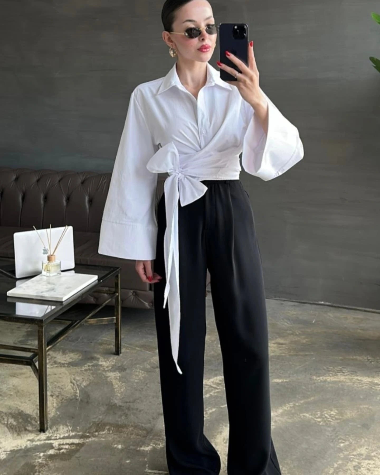 - Long sleeves with bell cuffs