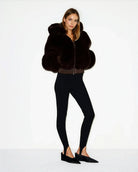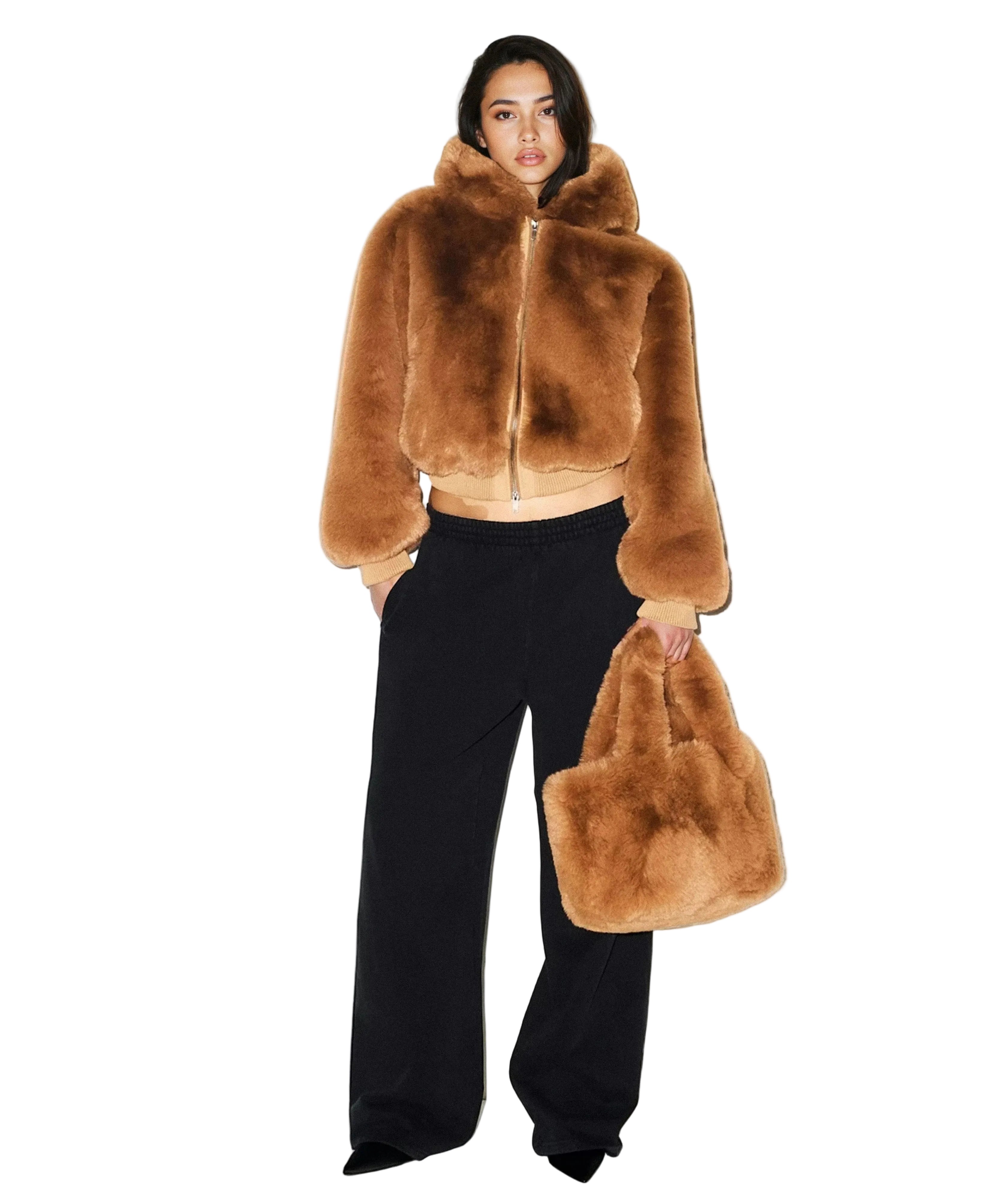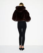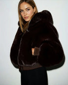 Women's Cropped Hooded Faux Fur Jacket with Zip-Front Closure and Long Sleeves