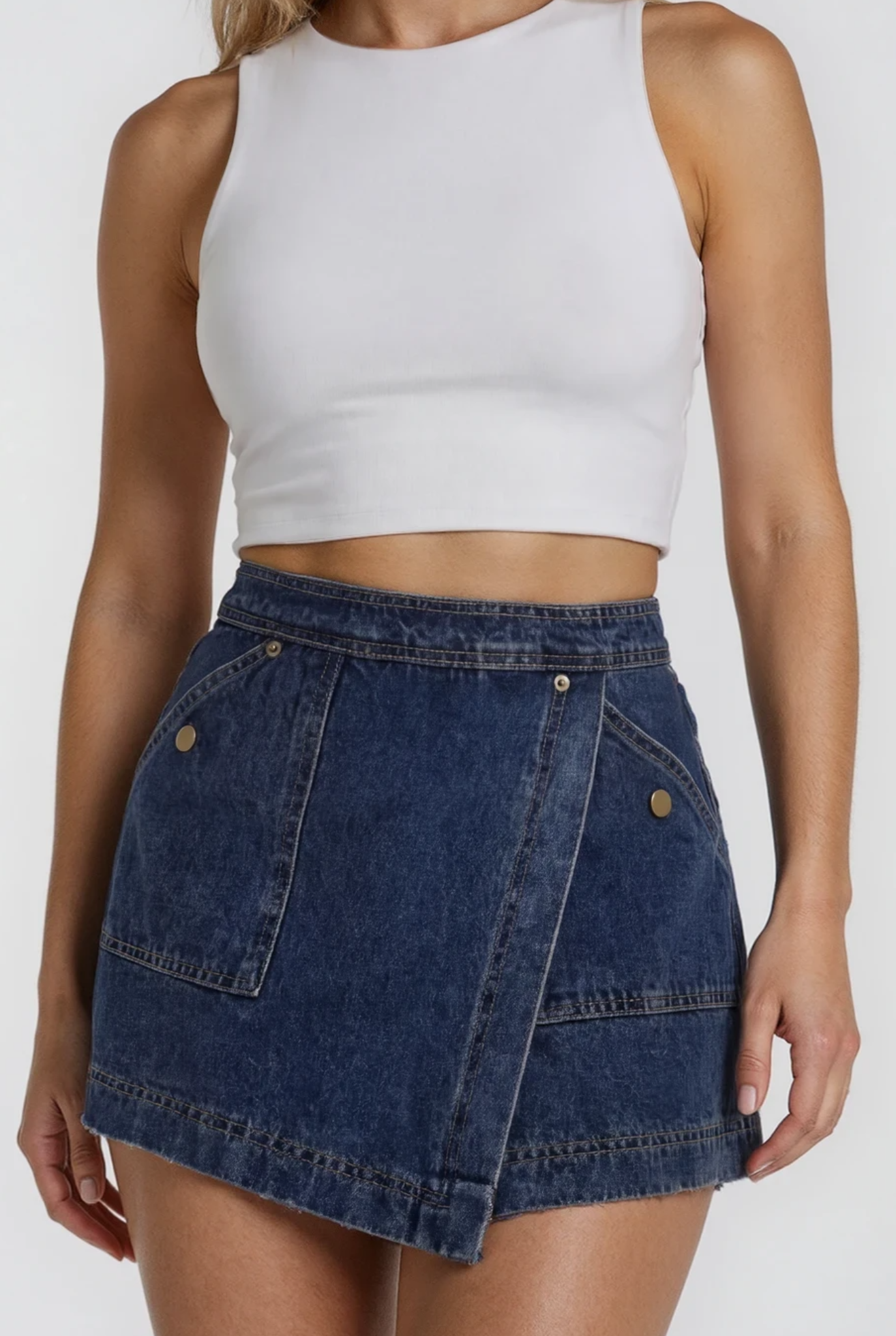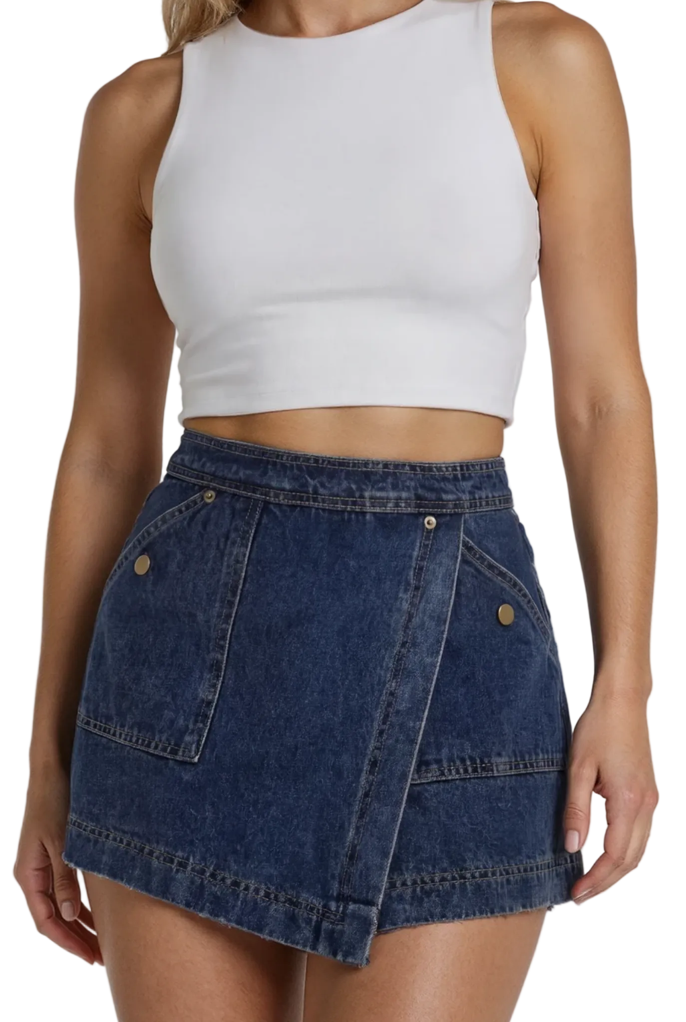 Women's Denim Wrap Front Shorts with Patch Pockets