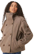 Women's Double-Breasted Jacket with Stand-Up Collar and Buttoned Cuff Tabs