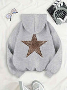 Women's Drawstring Hoodie with Leopard Print Star and Kangaroo Pocket