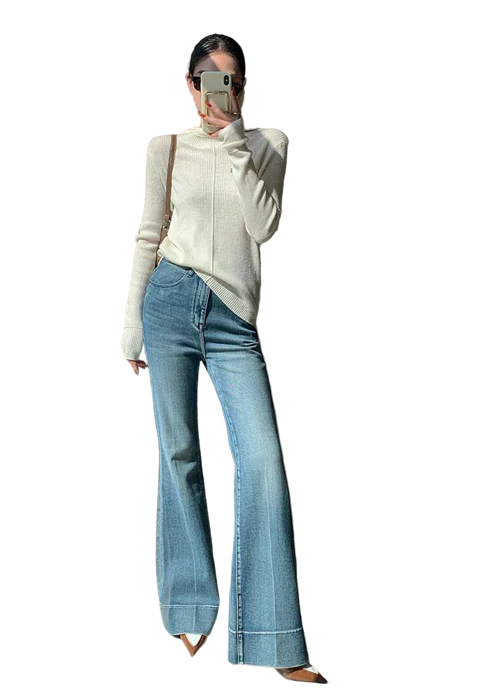 Women's Full-Length Wide-Leg Flared Pants with Button Closure and Front Pockets