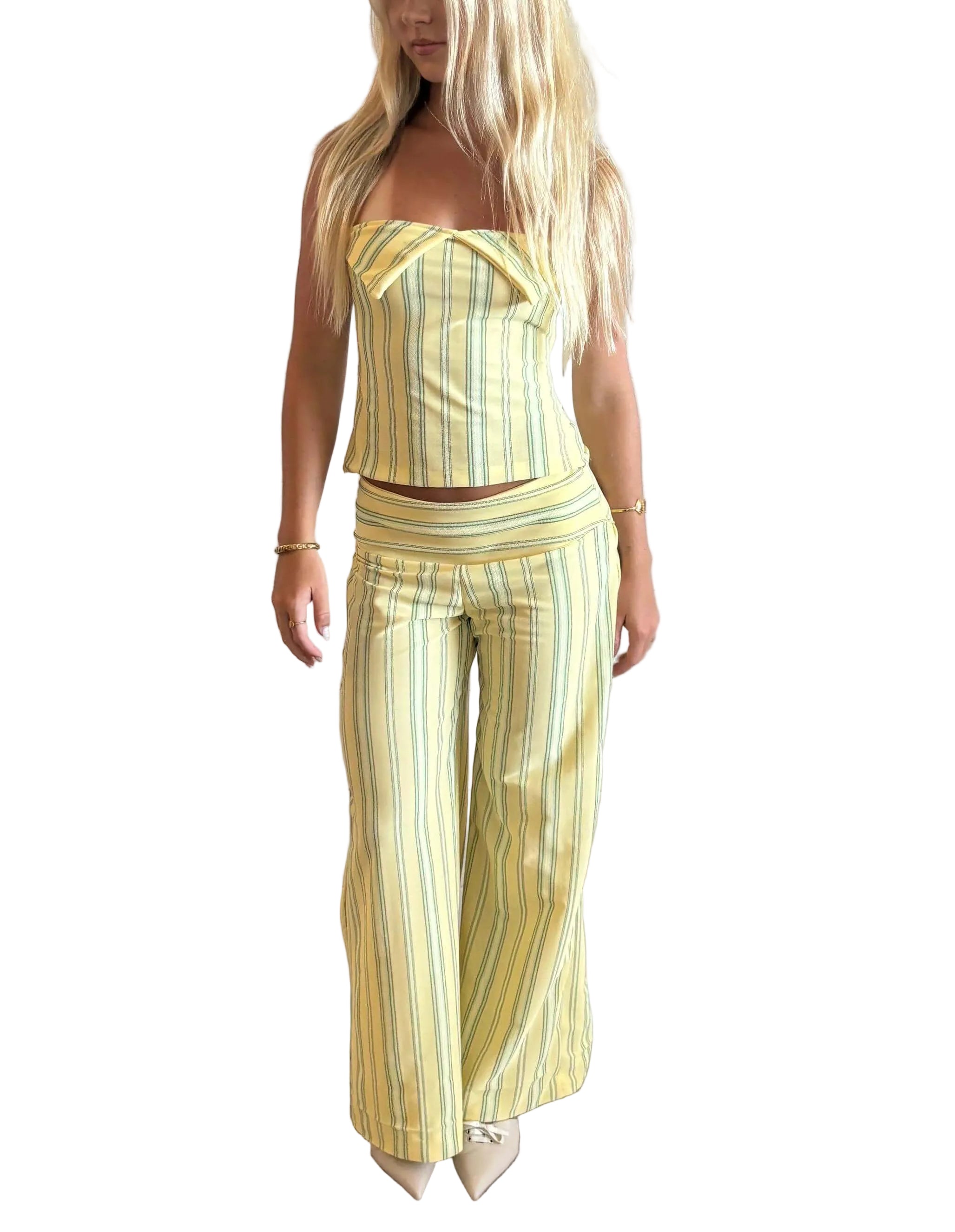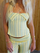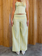 Women's Halter Neck Top with Centre Twist and Wide Leg Pants Summer Set with Vertical Stripe
