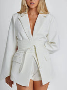 Women's Notched Lapel Blazer with Wide Waist Belt and Flap Pockets