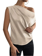 Women's One-Shoulder Asymmetrical Top with Draped Sleeve