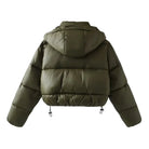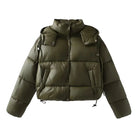Women's Quilted Puffer Jacket with Hood and High Collar and Drawstring Hem
