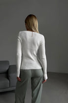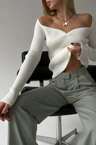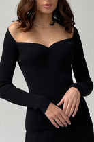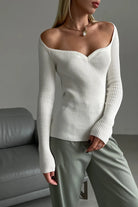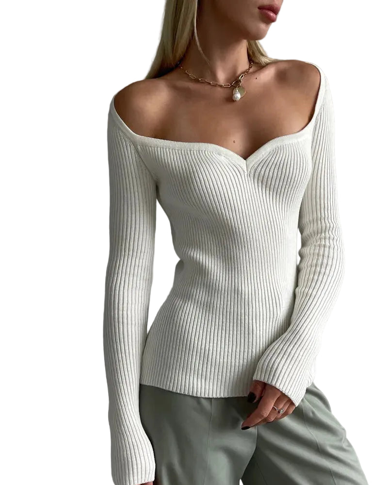 Women's Ribbed Knit Top with Sweetheart Neckline and Long Sleeves