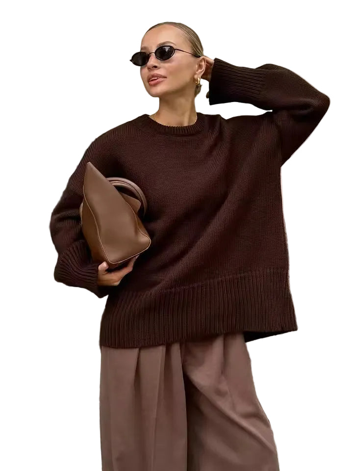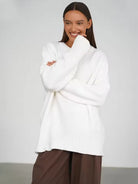 Women's Round Neckline Jumper with Long Sleeves and Wide Ribbed Cuffs and Hem