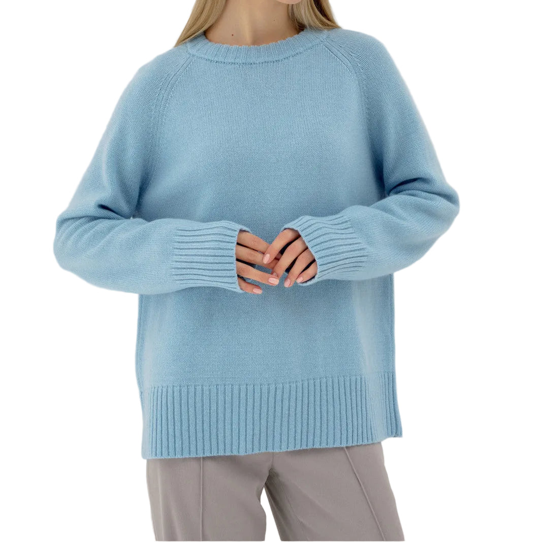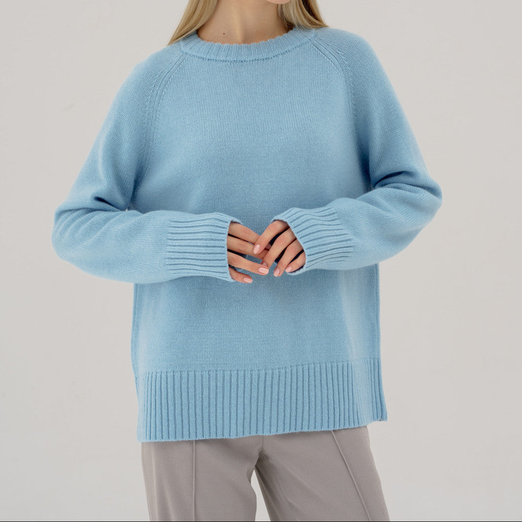 Women's Round Neckline Jumper with Raglan Sleeves and Ribbed Cuffs and Hem