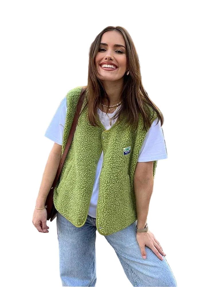 Women's Sleeveless Fleece Jacket with Snap Button Closure