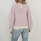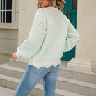 Women's Striped Knit Jumper with Crew Neckline and Scalloped Hemline