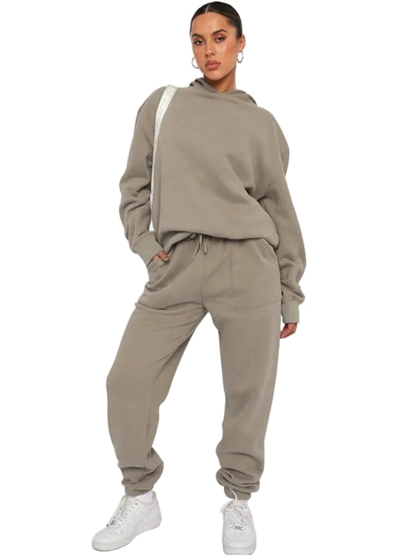 Women's Two-Piece Jogging Set with Drawstring Hood and Matching Jogger Pants