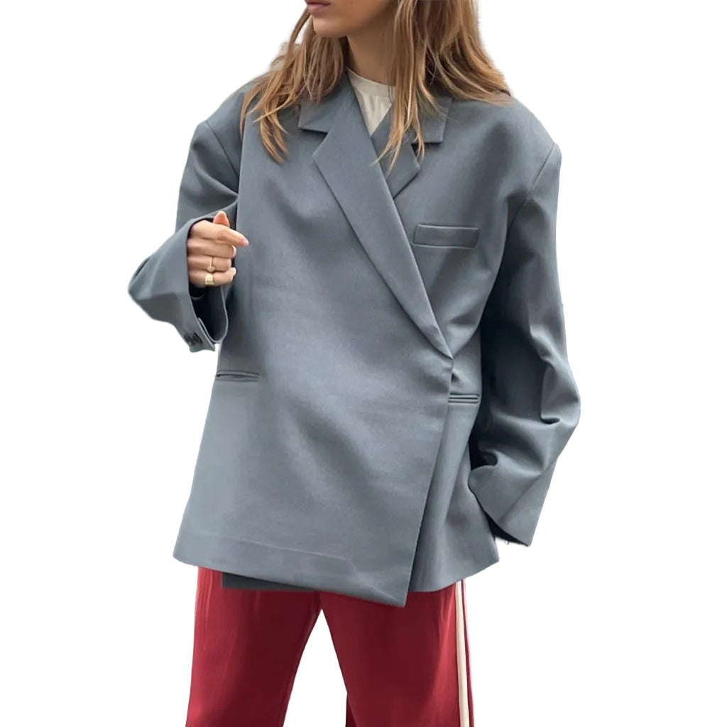 Women's Wrap-Front Blazer with Wide Lapel Collar and Welt Pockets