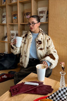Women's Zip-Front Faux Fur Jacket with Spotted Pattern
