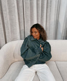 This women's jacket has visible contrast stitching running throughout the outer surface. A full zip closure runs down the front. The jacket has a fold-down collar at the neckline. Long sleeves extend to the wrists and the jacket ends at hip length.