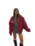 Women's Zip Front Jacket with Contrast Stitching and Fold-Down Collar