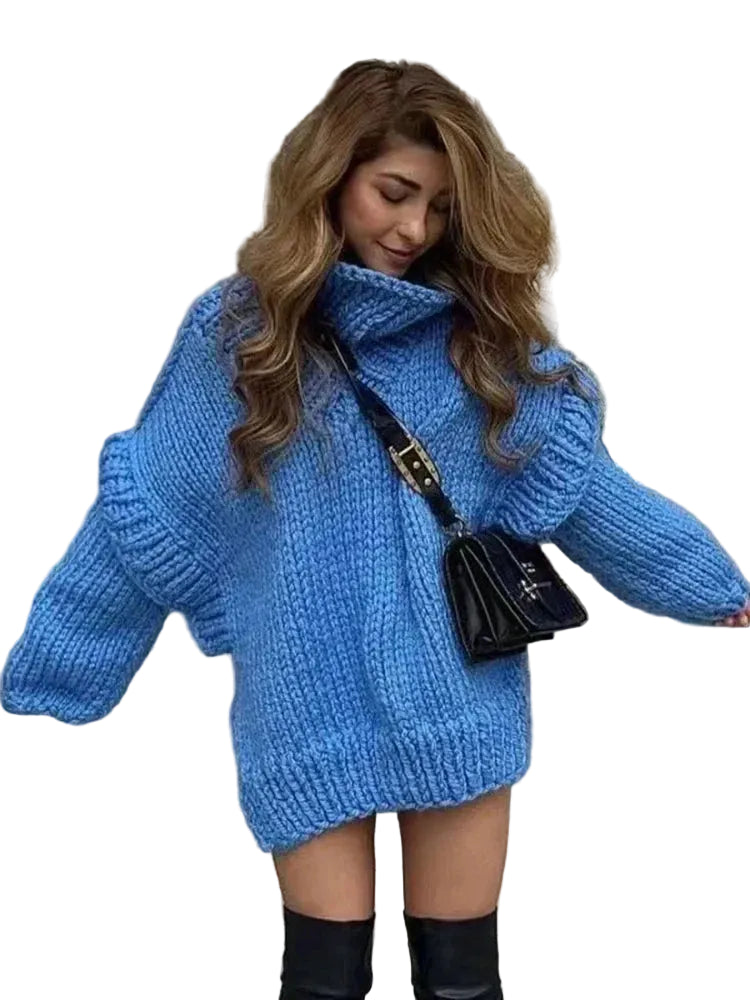 Women's Chunky Knit Turtleneck Jumper with Long Sleeves and Ribbed Cuffs