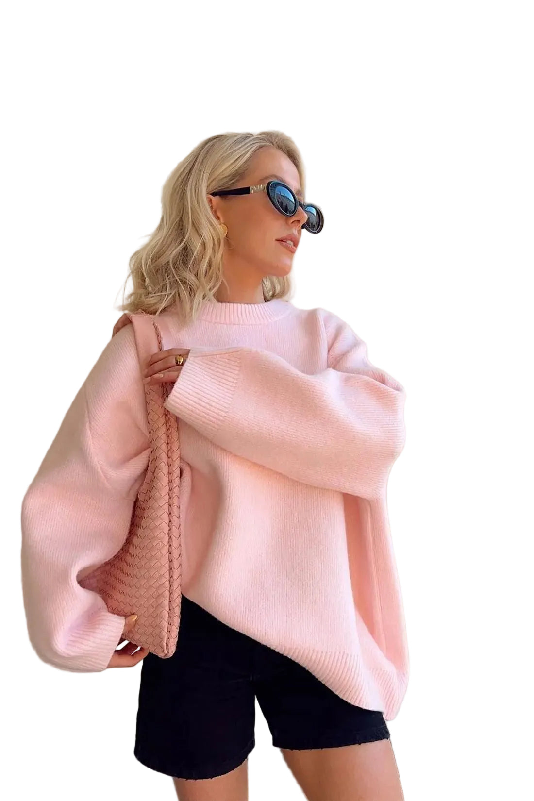 Women's Crew Neck Knit Jumper with Balloon Sleeves and Drop Shoulder