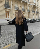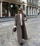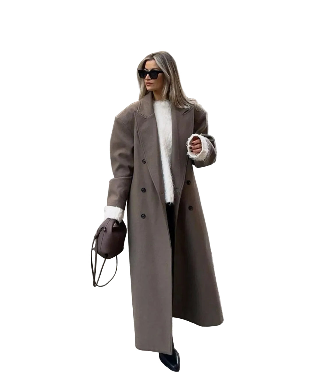 Women's Double-Breasted Maxi Coat with Lapel Collar and Long Sleeves