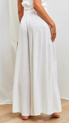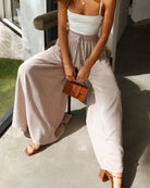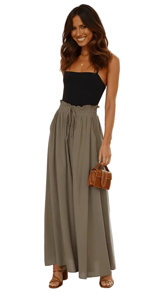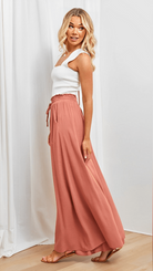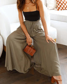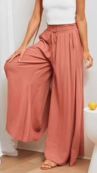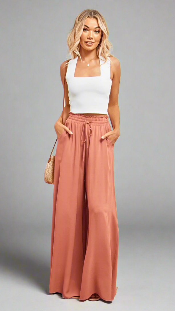 Women's Elasticated Waist Wide Leg Pants with Drawstring and Front Pleats