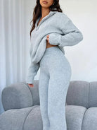 Women's Half-Zip Collar Long Sleeve Ribbed Knit Sweater and Trousers Set