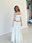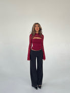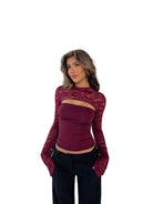 Women's Long Sleeve Lace Top with Front Cutout and Bell Cuffs