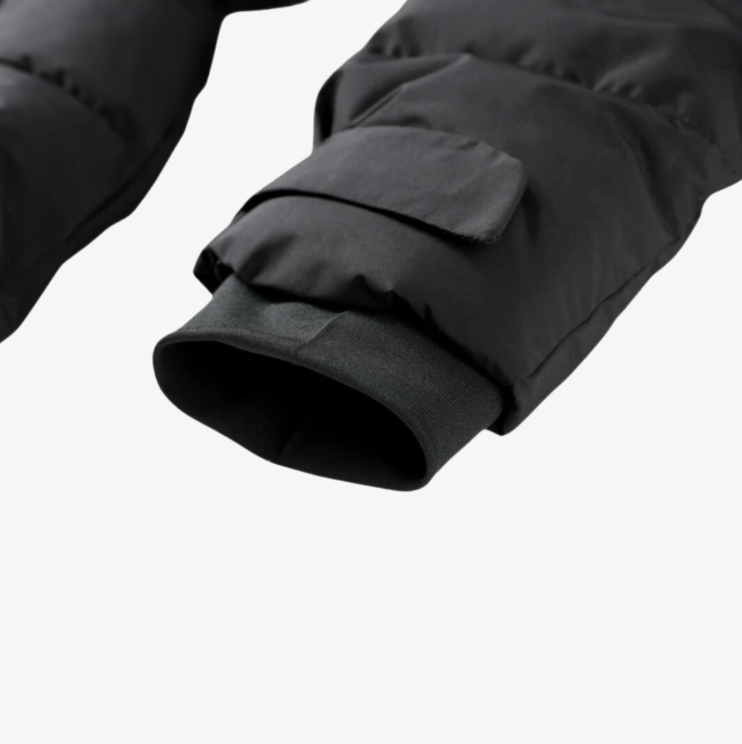 Women's Quilted Puffer Jacket with Belt and Stand Collar and Chest Flap Pockets