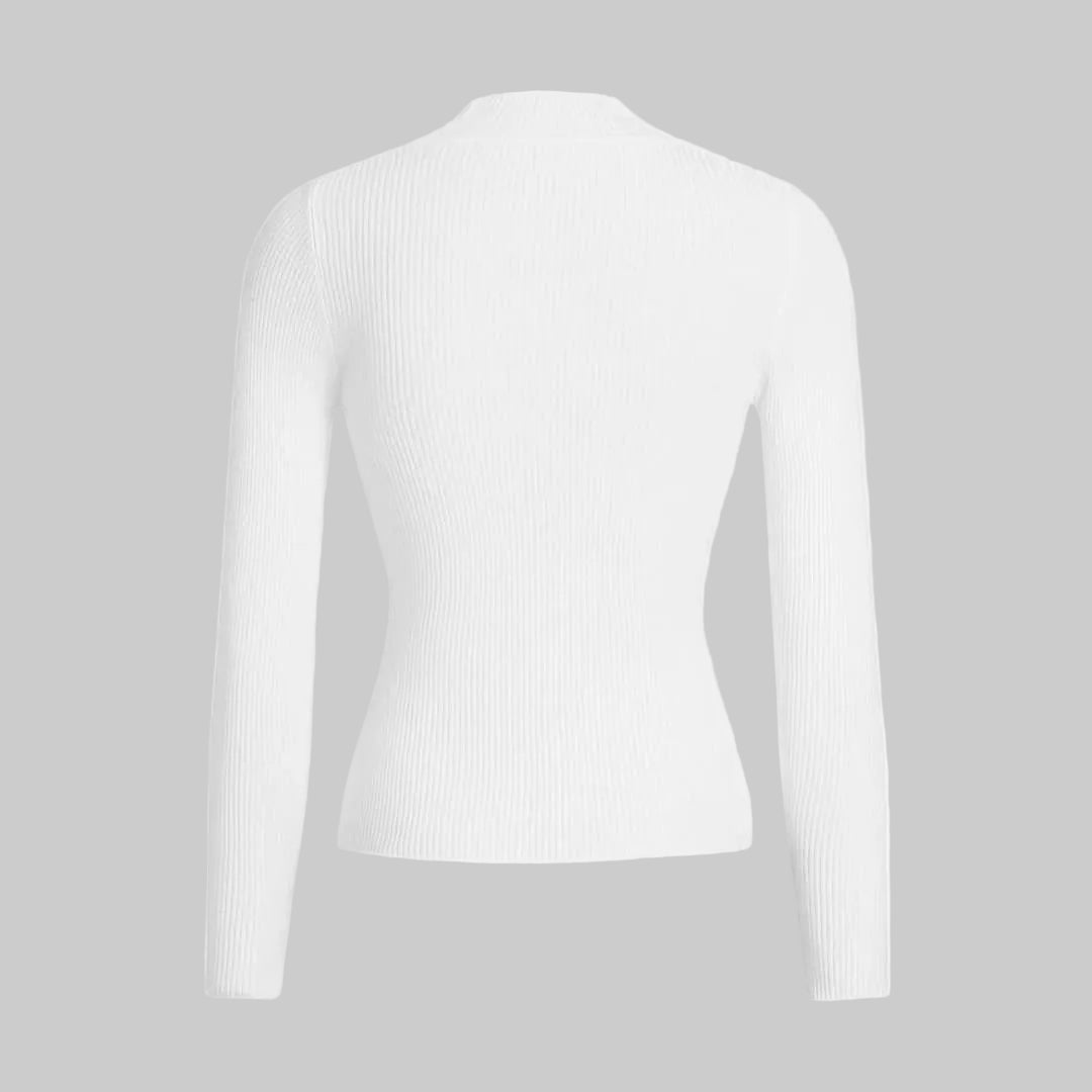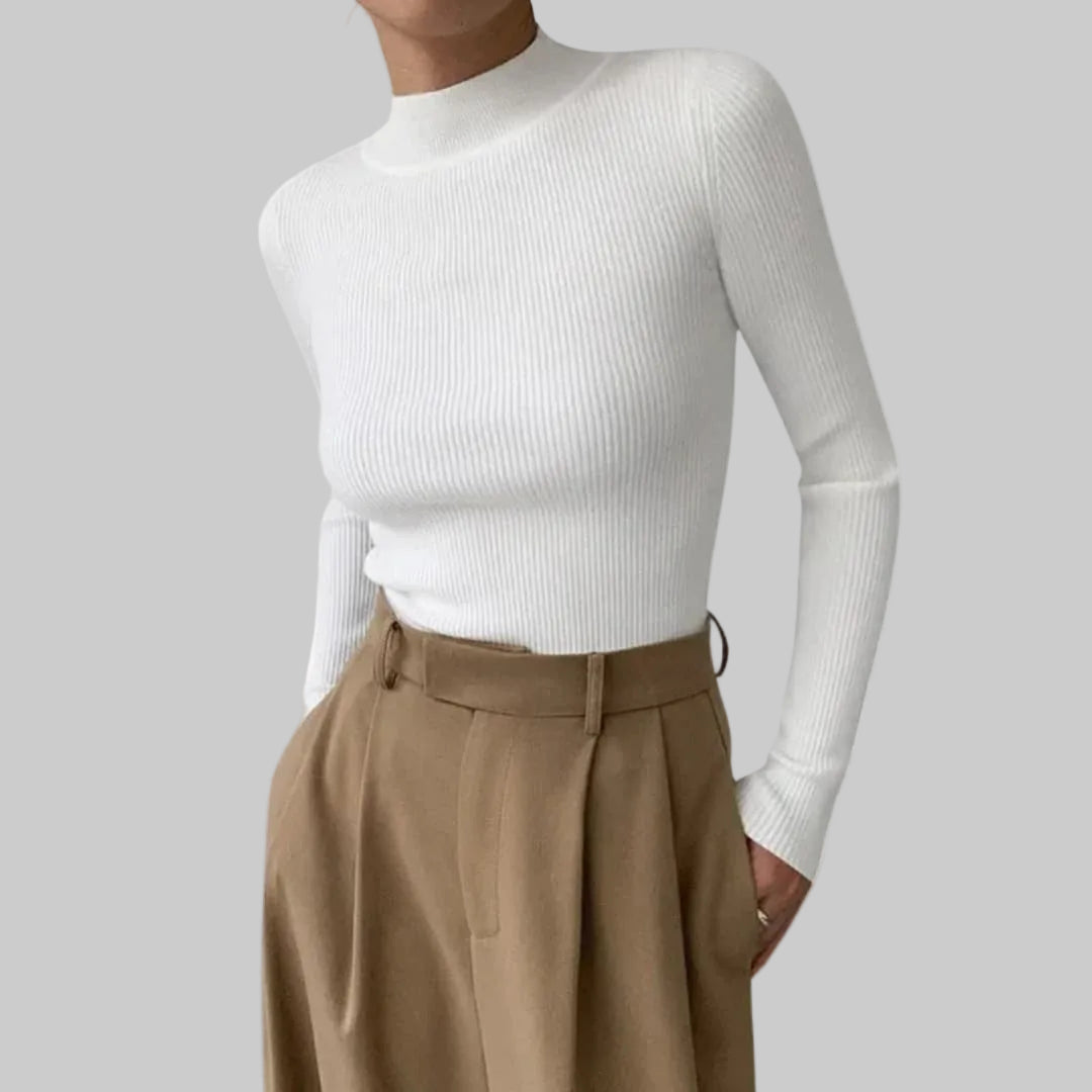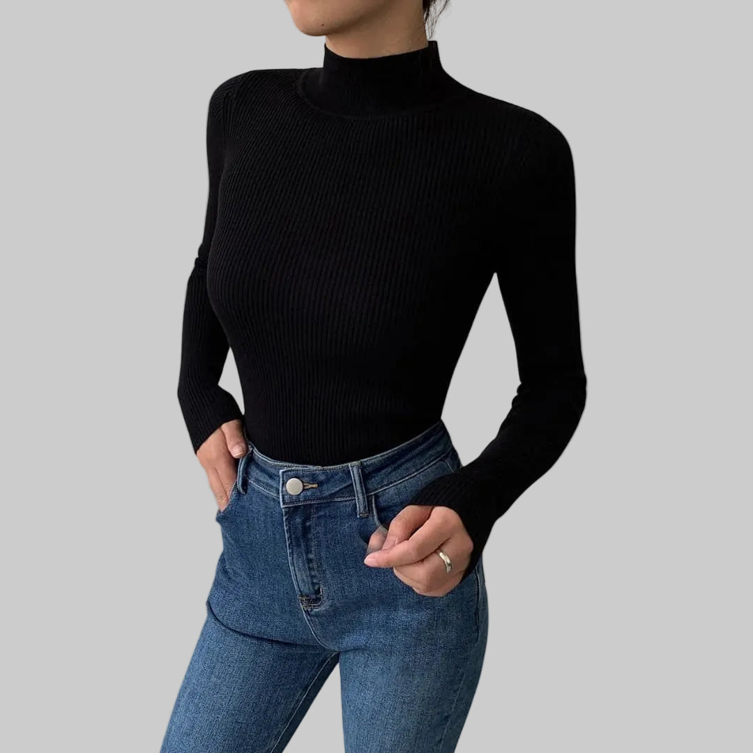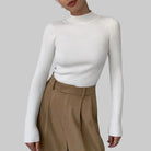 Women's Ribbed Knit Jumper with Mock Neckline and Long Sleeves