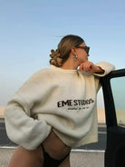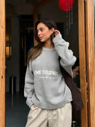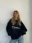 Women's Round Neckline Jumper with Front Text Print and Long Sleeves with Ribbed Cuffs