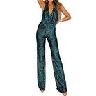 Women's Sequin Halter Jumpsuit with Cowl Neckline and Wide-Leg Pants
