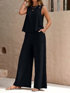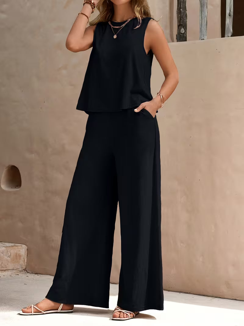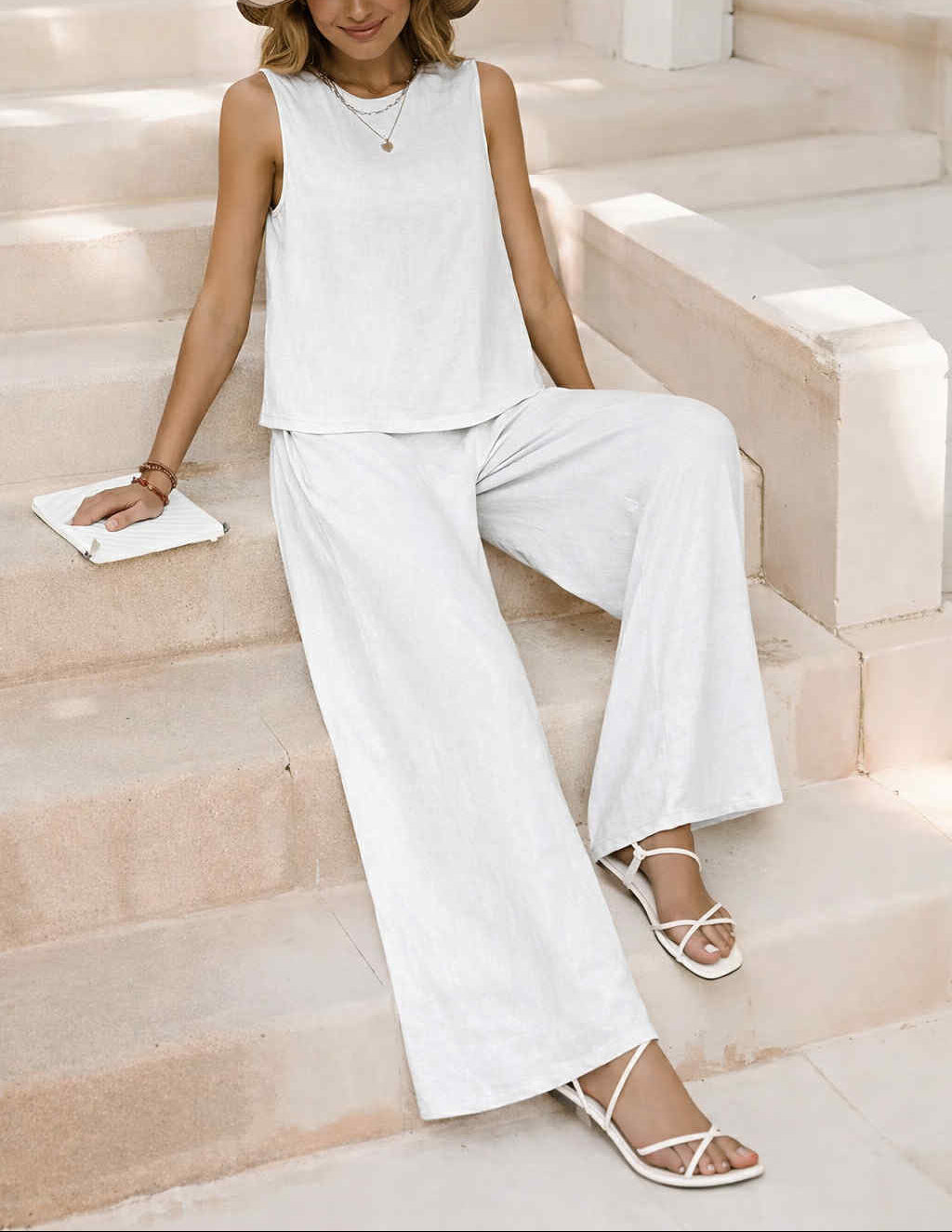 Women's Sleeveless Round-Neck Top and Trousers Summer Set
