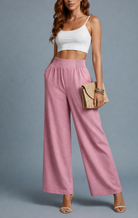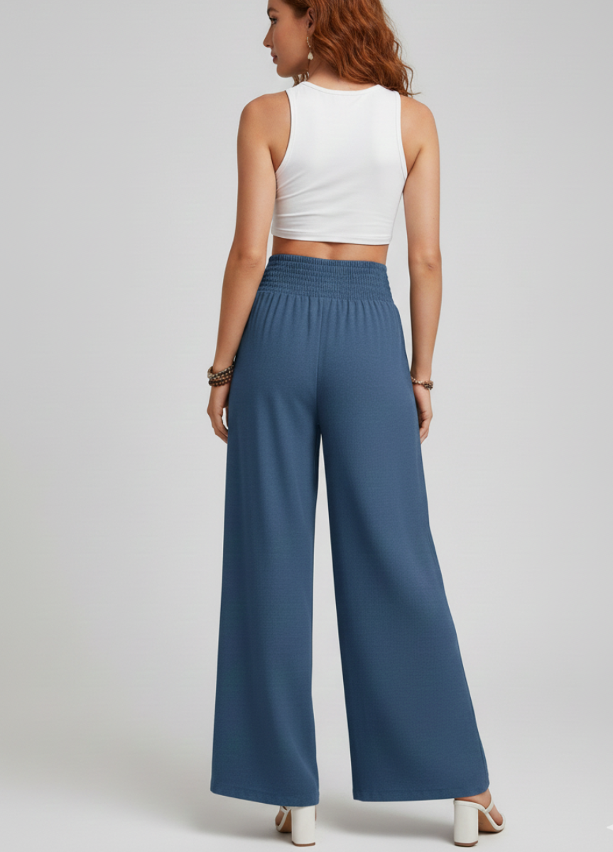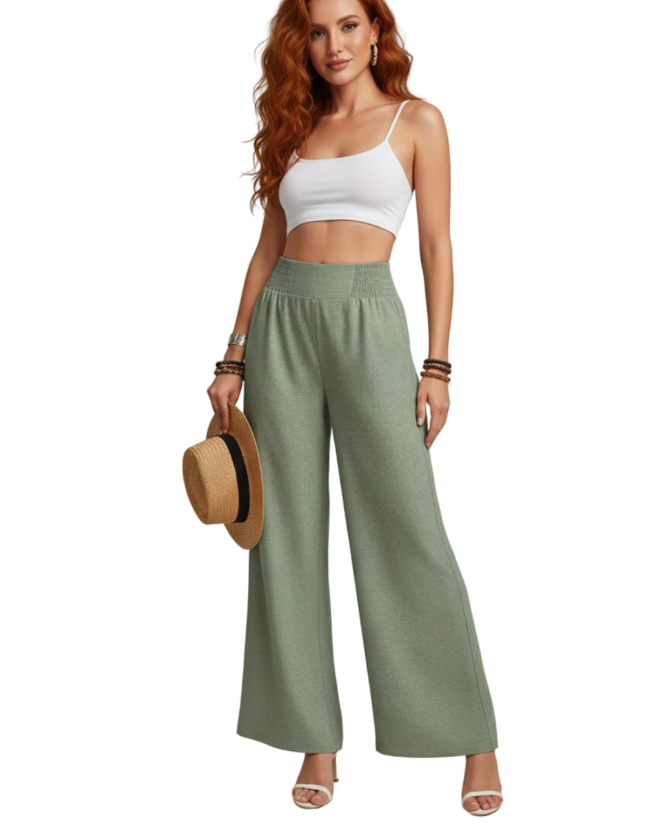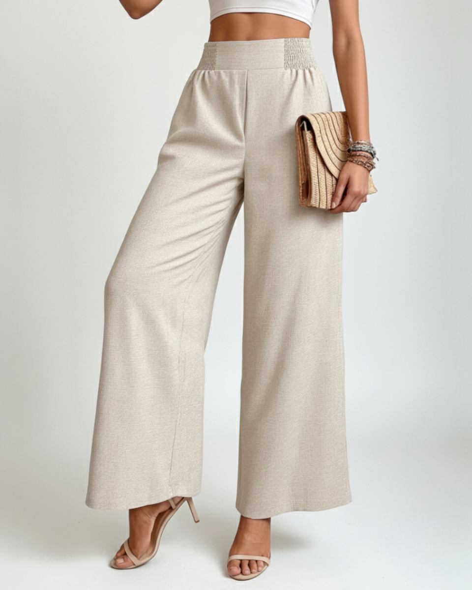 Women's Wide-Leg Pants with High Elastic Waist and Full Length